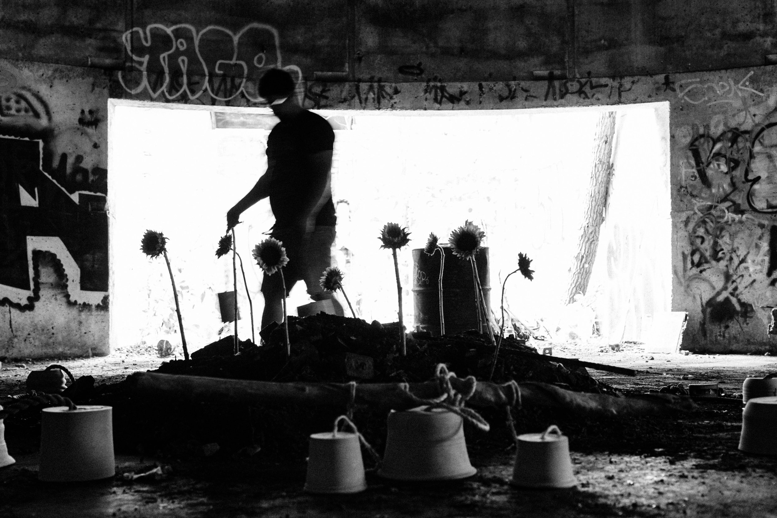 First iteration of 49 in Great Falls Silo. 49 is a destructive ceramic musical exploration offered over 21 performances and installation during the year (2025-26) that I turn the age my father was when he died. 49 allows me to come face-to-face with my own physical body in this year through dance, performance and physical harvesting and creation with clay.